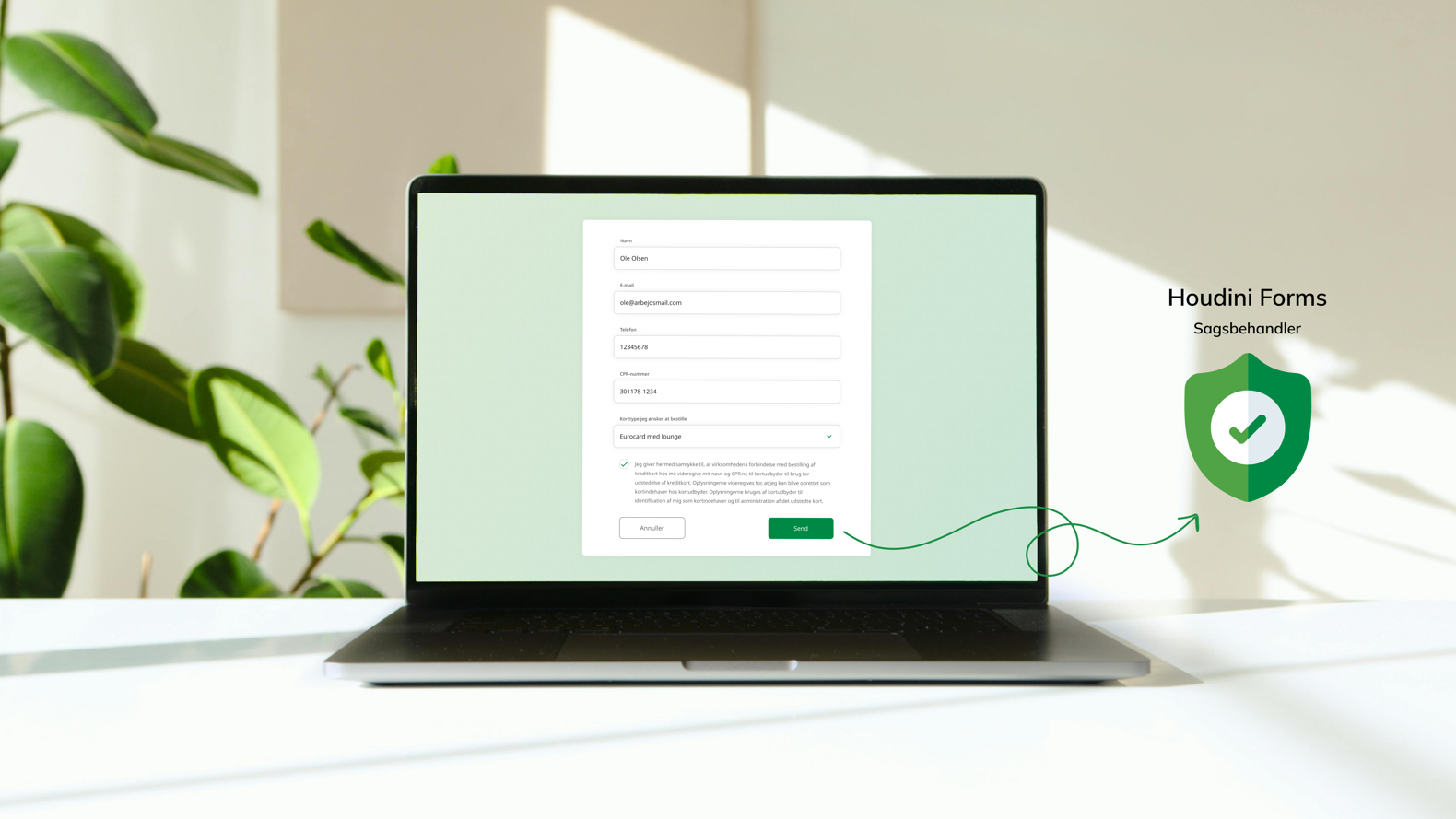 Med Houdini Forms kan du fortsat bruge det formularmodul, du allerede kender fra dit CMS (fx Umbraco eller Drupal). Formularernes design følger det eksisterende website, men data flyttes ud af CMS’et og håndteres sikkert i Houdini. På den måde undgår du, at følsomme oplysninger ligger i et system, hvor for mange har adgang eller hvor sikkerheden ikke er tilstrækkelig.