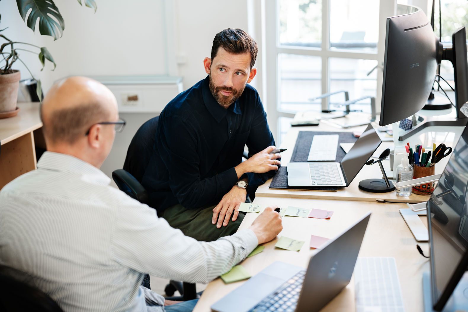 Vi starter alle vores projekter med en afklaringsfase. Her er mødet mellem to sæt af ekspertiser centralt: kundens fagspecifikke viden om eget domæne og Eksponents digitale ekspertise og projekterfaring. Og det er i dette møde, at projektet får sin form.